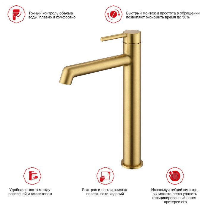Смеситель Raglo высокий для умывальника R20.15.03 золотой сатин Основные характеристики: