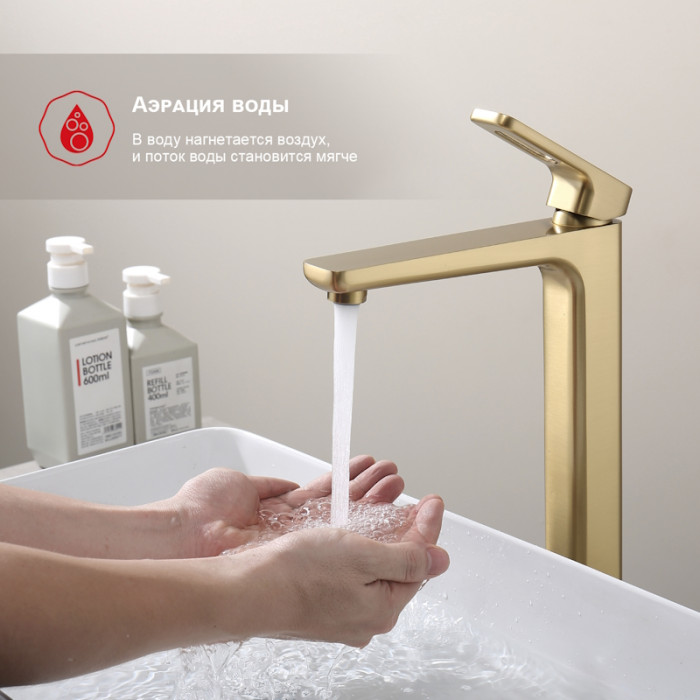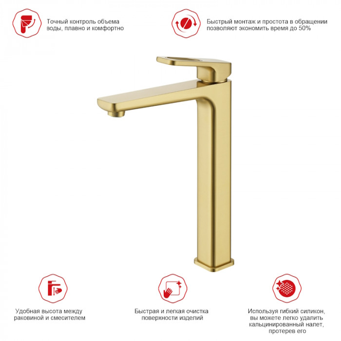 Смеситель Raglo высокий для умывальника R51.15.03 золотой сатин Основные характеристики: