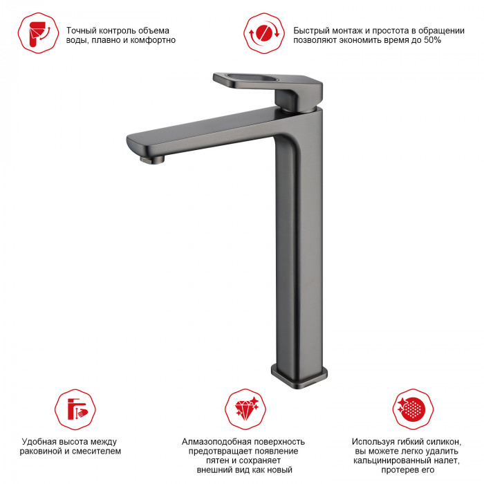 Смеситель Raglo высокий для умывальника R51.15.09 графит Основные характеристики: