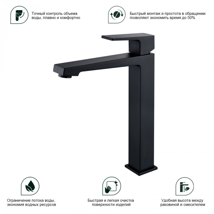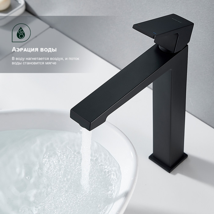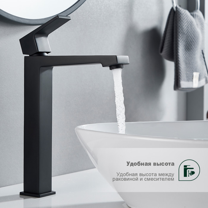 Смеситель Splenka высокий для умывальника S01.15.06 черный Основные характеристики: