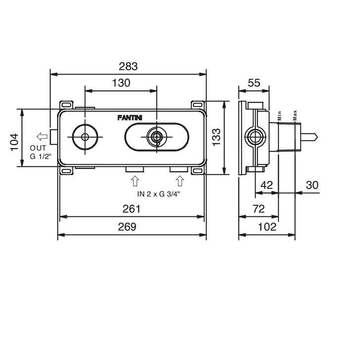 Встраиваемая часть Fantini Внутренние части 19 00 D231A Fantini Внутренняя часть термостатического смесителя для душа, 1 источник, 3/4"