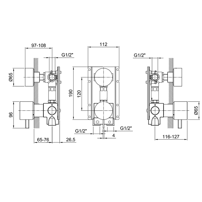 Встраиваемая часть Fantini Внутренние части 17 00 A585A Fantini Внутренняя часть смесителя для душа, переключатель на 2 источника, с Eco System, 1/2'
