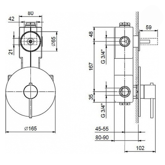 Встраиваемая часть Fantini Внутренние части 19 00 6002A Fantini Внутренняя часть термостатического смесителя для душа, 2 источника, 3/4"