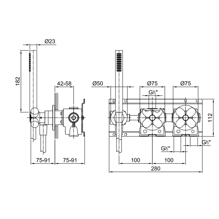 Встраиваемая часть Fantini Внутренние части 22 00 0384A Fantini Внутренняя часть смесителя для душа, переключатель на 2 источника, 1/2"