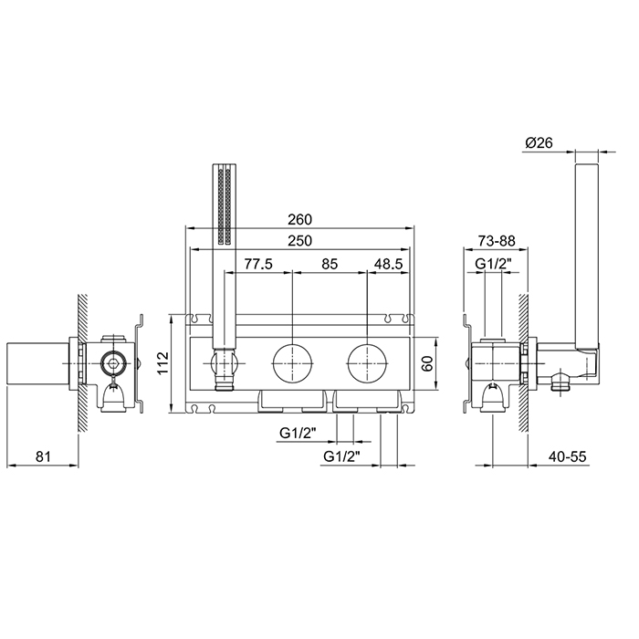 Встраиваемая часть Fantini Внутренние части 22 00 D184A Fantini Внутренняя часть смесителя для душа, переключатель на 2 источника, 1/2"