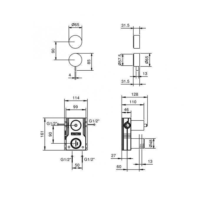 Встраиваемая часть Fantini AF/21 27 93 A785B Матовая сталь FANTINI AF/21 Встраиваемый смеситель для душа на 2 потока, цвет матовая натуральная сталь (без внутренней части)
