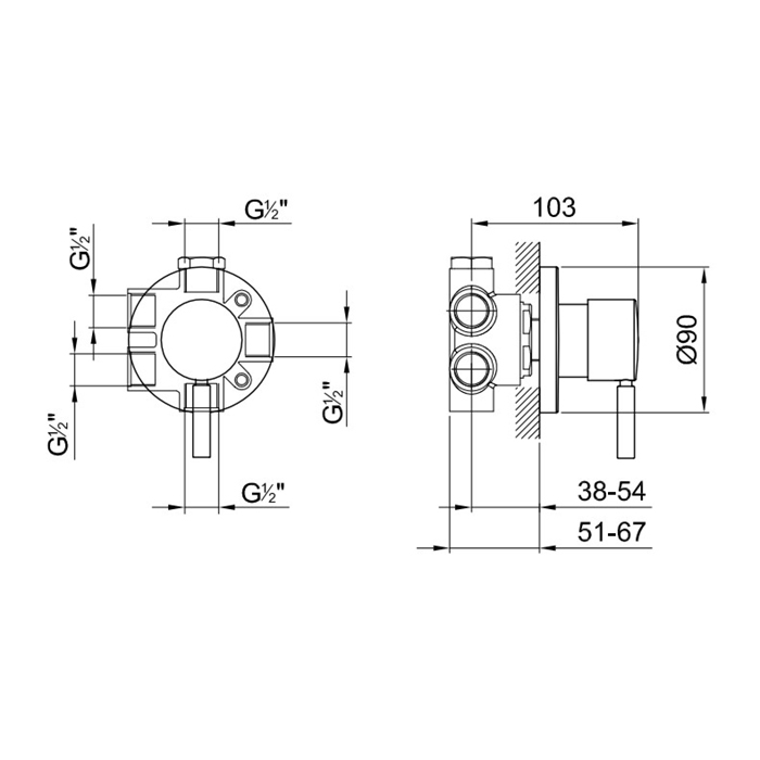 Встраиваемая часть Fantini Nostromo 19 00 1679A Нержавейка Fantini Внутренняя часть смесителя для душа, переключатель на 3 источника, с Eco System, 1/2''