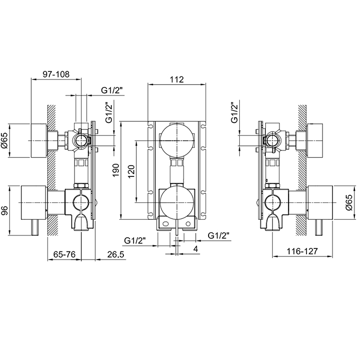 Встраиваемая часть Fantini Внутренние части 17 00 A587A Fantini Внутренняя часть смесителя для душа, переключатель на 3 источника, с Eco System, 1/2'