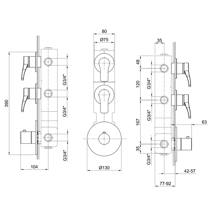 Встраиваемая часть Fantini Внутренние части 19 00 3902A Fantini Внутренняя часть термостатического смесителя для душа, 2 источника, 3/4"