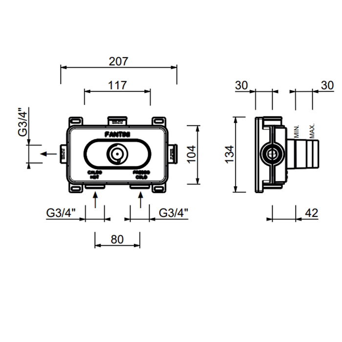 Встраиваемая часть Fantini Внутренние части 19 00 D400A FANTINI Встраиваемая часть термостатического смесителя для душа