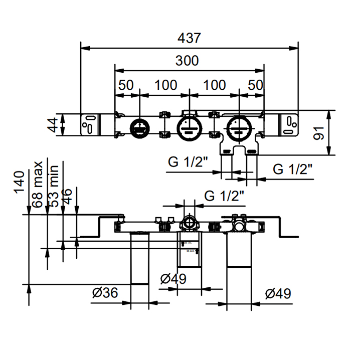 Встраиваемая часть Fantini Внутренние части 44 00 R084A Fantini Внутренняя часть смесителя для душа, переключатель на 2 источника, 1/2"