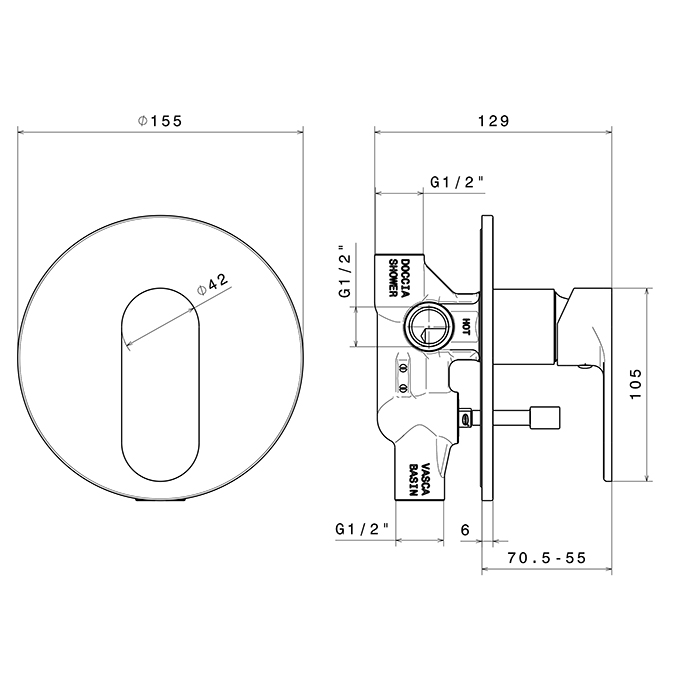 Смеситель для душа Newform Extro 69370.21.018 Хром Newform Extro Смеситель с автоматическим переключателем на 2 выхода, с подключением на 1/2” , со скрытой частью, цвет: хром