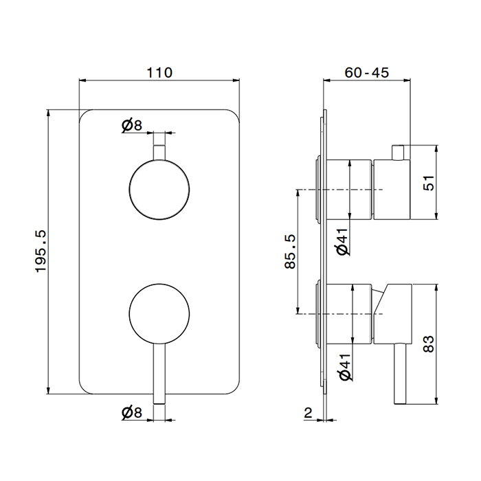 Смеситель для душа Newform X-Steel 316 69673EX.50.050 Нержавейка Newform X-Steel 316 Внешняя часть смесителя для душа с механическим переключателем на 2 потока, цвет: нержавеющая сталь