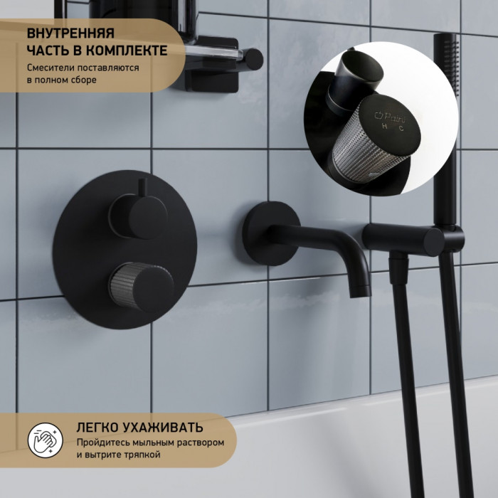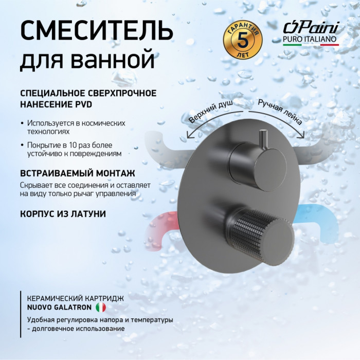 Смеситель для ванны PAINI Cox Grip встраиваемый, черный брашированный PVD (PZ) 7GPZ6911 встраиваемые смесители для ванны Италия
