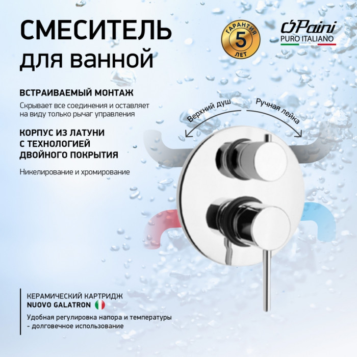 Смеситель для ванны PAINI Cox встраиваемый, хром (CR) 78CR6911 встраиваемые смесители для ванны Италия
