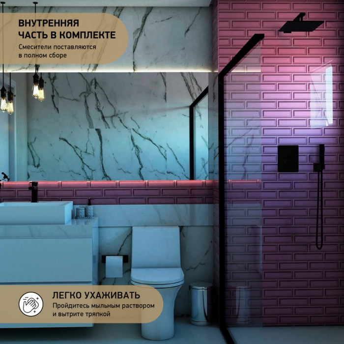 Выглядит стильно, матовый черный не маркий. Ход рычага плавный, напор регулируется точно. Из минусов - тяжёлый, пришлось аккуратно подтягивать крепеж.