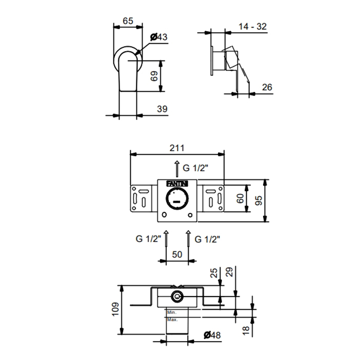 Смеситель для душа Fantini Myo 61 02 V663B Хром Fantini MYO Встраиваемый Смесители для душа наружная часть, на 1 источник, цвет: хром