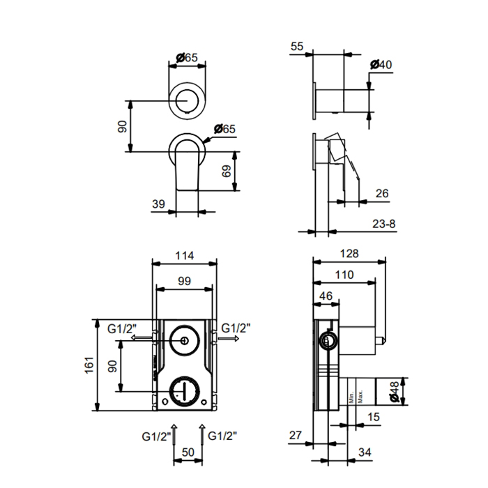 Смеситель для душа Fantini Myo 61 02 V681B Хром Fantini MYO Встраиваемый Смесители для душа наружная часть, на 2 источника, цвет: хром