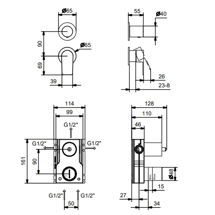 Смеситель для душа Fantini Myo 61 13 V689B Черный матовый Fantini MYO Встраиваемый Смесители для душа наружная часть, на 3 источника, цвет: черный матовый