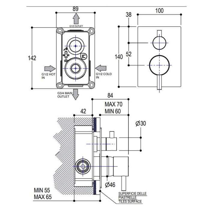 Ritmonio Diametro35 PR52GC111F34 Бронза Ritmonio Diametro35 S Смеситель встраиваемый однорычажный, для ванны/душа, внешняя часть, цвет: Brushed Dark Bronze