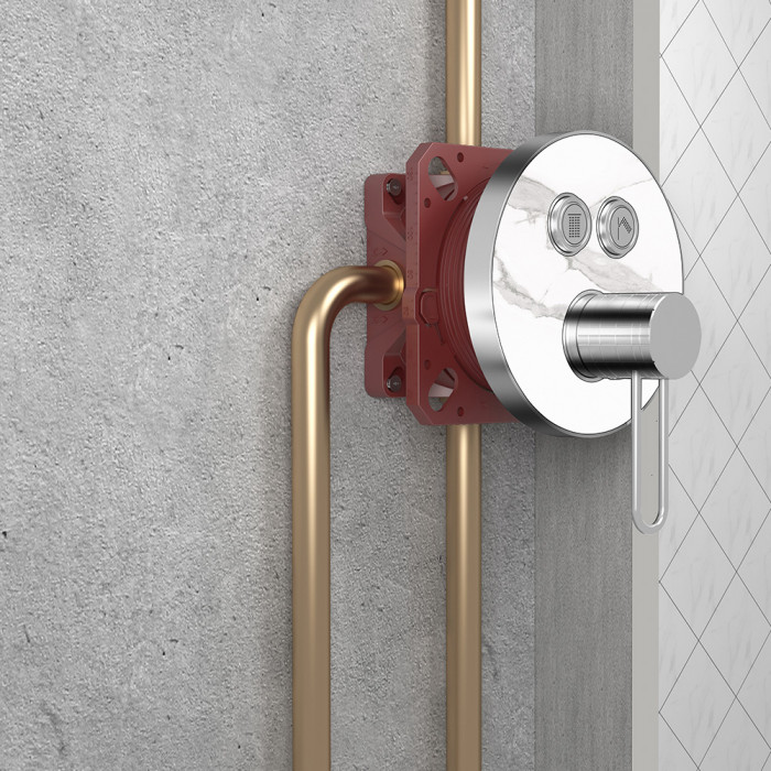 Смеситель для душа AQUAme AQM8801CR Хром AQM8801CR Встраиваемый термостат с регулировкой напора на 2 потр., хром Нажимной На 1 отверстие комплект поставки: рукоятка, гильза, розетка, функциональный блок, кнопки;
