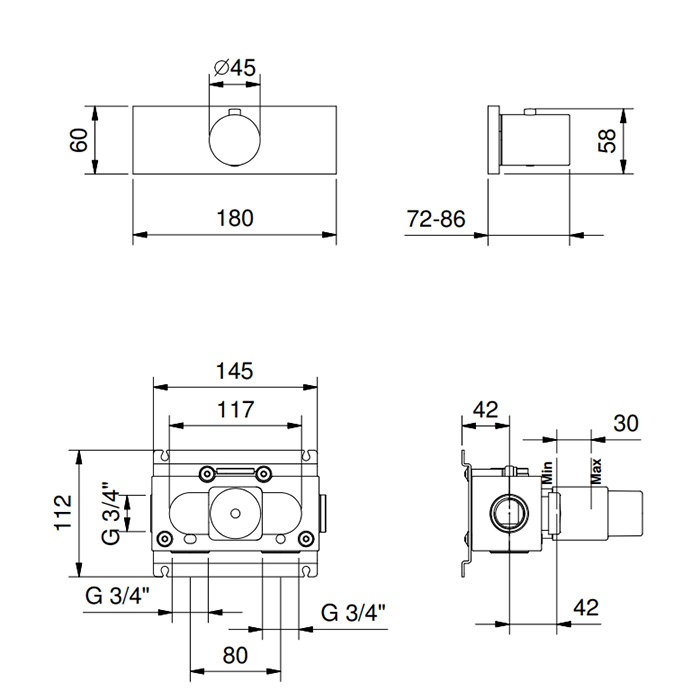 Смеситель для душа Fantini Milano 31 93 G800B Нержавейка FANTINI MILANO Смеситель для душа встраиваемый, термостатический, внешняя часть, отделка Матовая натуральная сталь