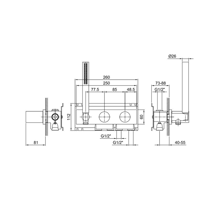Смеситель для душа Fantini Milano 31 P5 E584B Gun metal Fantini Milano Смеситель для душа, встраиваемый, на 2 источника, с ручн.душем, (наружняя часть), цвет: Matt Gun Metal PVD