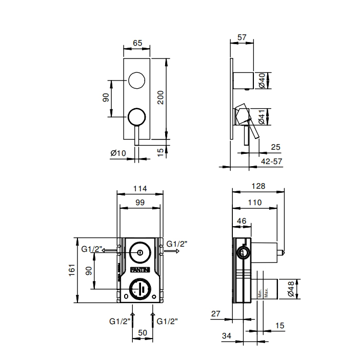 Смеситель для душа Fantini Nostromo 50 02 G485B Хром Fantini NOSTROMO Встраиваемый Смесители для душа наружная часть, цвет хром