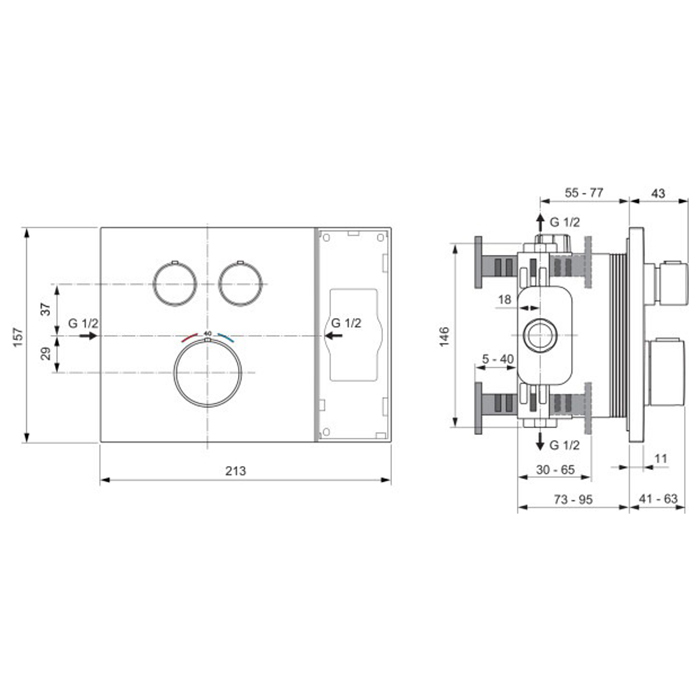 Смеситель для душа Ideal Standard Ceratherm A7894XG Черный матовый Ideal Standard Ceratherm Navigo Solos Смеситель для душа, встраиваемый, термостатический, без комплектом EASY-BOX A1000NU, цвет: Черный матовый