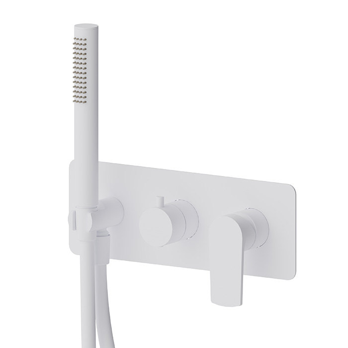 Смеситель для душа Newform Haka 72069E.01.014 Белый матовый Newform Haka Внешняя часть механического смесителя для душа, с ручным душем и переключателем на 2 потока, цвет: белый матовый