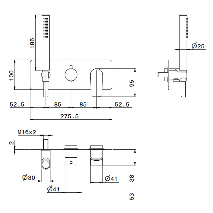 Смеситель для душа Newform Haka 72069E.21.018 Хром Newform Haka Внешняя часть механического смесителя для душа, с ручным душем и переключателем на 2 потока, цвет: хром