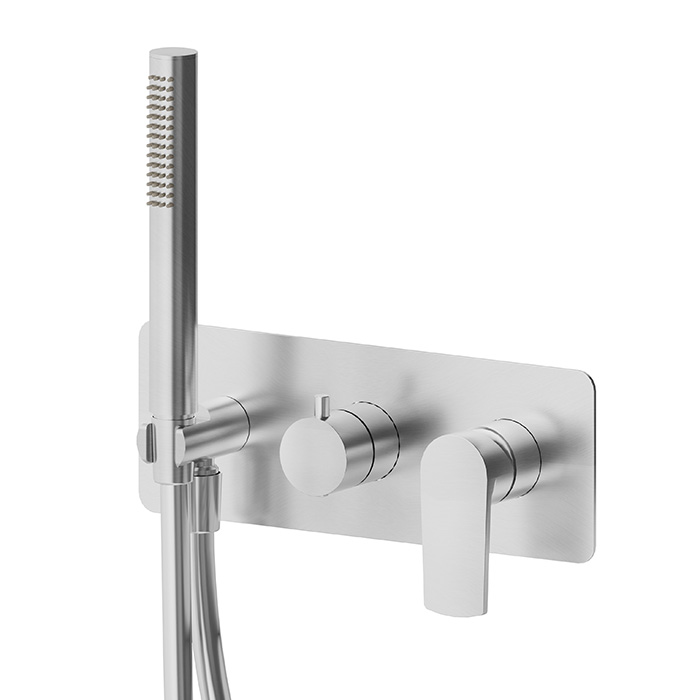 Смеситель для душа Newform Haka 72069E.59.066 Нержавейка Newform Haka Внешняя часть механического смесителя для душа, с ручным душем и переключателем на 2 потока, цвет: PVD brushed stainless steel