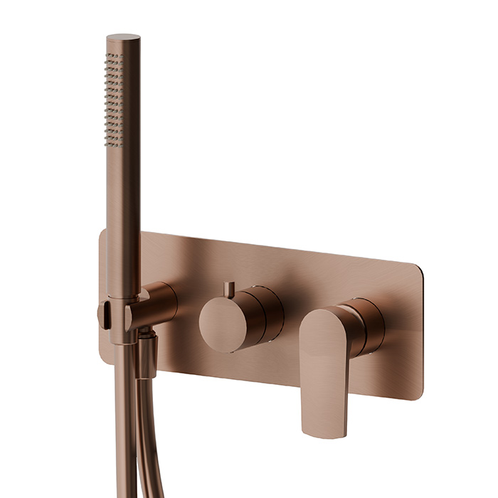 Смеситель для душа Newform Haka 72069E.59.067 Медь Newform Haka Внешняя часть механического смесителя для душа, с ручным душем и переключателем на 2 потока, цвет: PVD brushed copper bronze