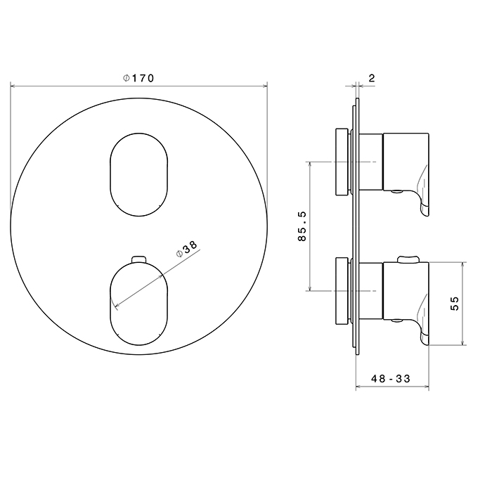 Смеситель для душа Newform Linfa II 67638E.01.093 Черный матовый Newform Linfa II Внешняя часть термостатического смесителя с ручкой для регулировки температуры и переключателем , цвет: черный матовый