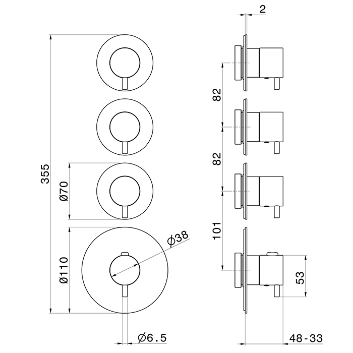 Смеситель для душа Newform X-Steel 316 69860EX.50.050 Нержавейка Newform X-Steel 316 Внешняя часть термостатического смесителя на 3 потока с отдельными ручками запорного вентиля, цвет: нержавеющая сталь