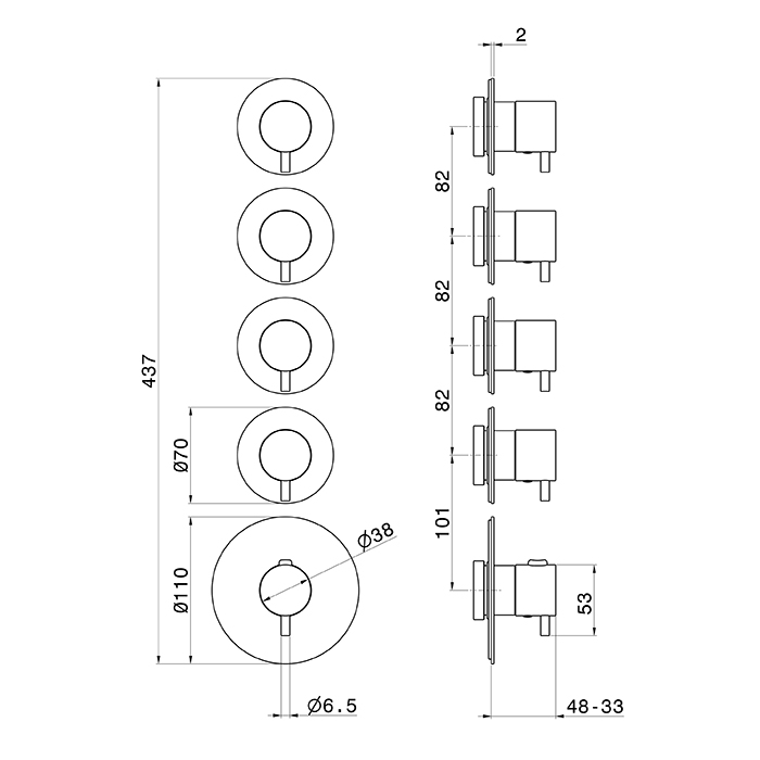 Смеситель для душа Newform X-Steel 316 69861EX.59.067 Медь Newform X-Steel 316 Внешняя часть термостатического смесителя на 4 потока с отдельными ручками запорного вентиля, цвет: PVD brushed copper bronze