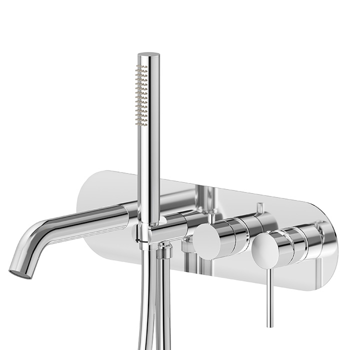 Смеситель для душа Newform XT 4272E.21.018 Хром Newform XT Наружная часть встр. смесителя для ванны, излив 169 мм., ручной душ, кронштейн, на декоративной пластине (для 31031), цвет: хром