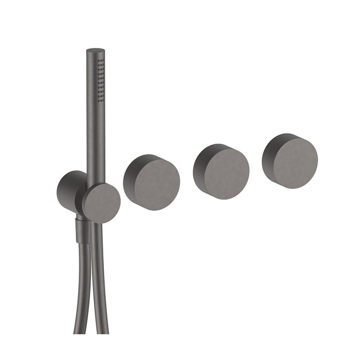 Смеситель для душа термостат Fantini AF/21 27 P5 A817B Gun metal Fantini AF/21 Встроенный смеситель для ванны на 2 потока, ручная лейка FIT, гибкий шланг 150 см, (наружная часть) цвет Matt Gun Metal PVD