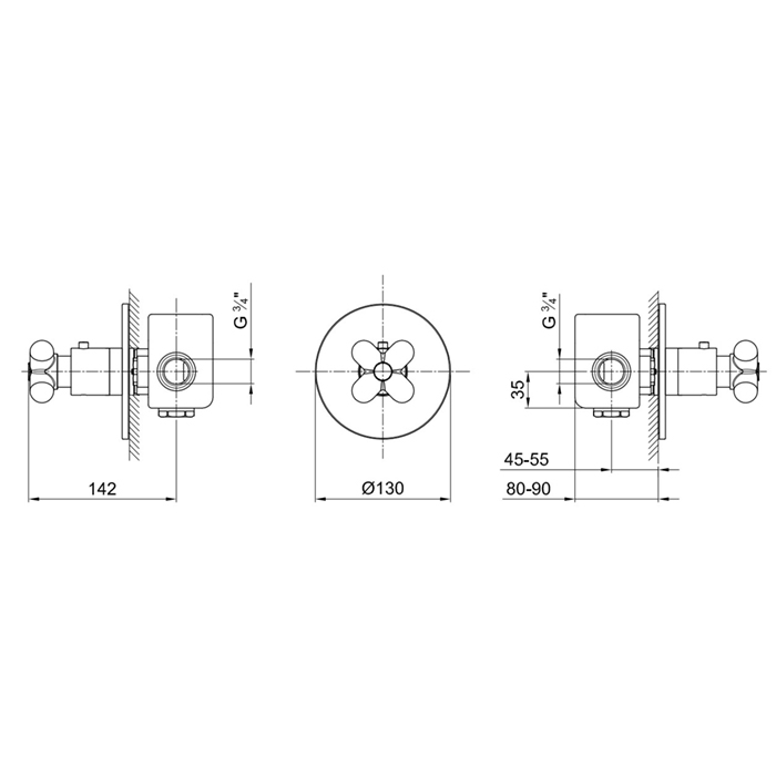 Смеситель для душа термостат Fantini I Balocchi 60 29 0600B Хром Fantini I Balocchi Встраиваемый термостат для душа на 1 источник, 3/4", (наружняя часть), цвет: белый матовый