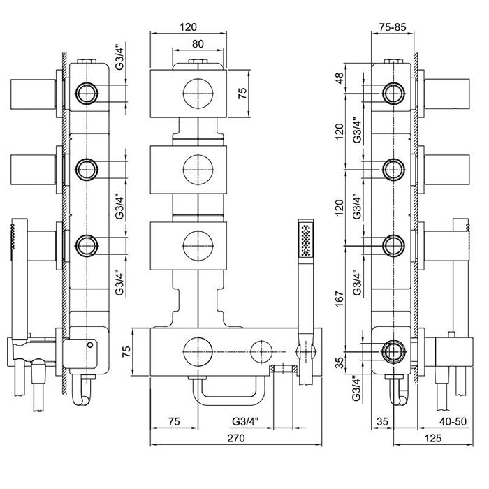 Смеситель для душа термостат Fantini Milano 31 93 4714B Матовая сталь Fantini Milano Встраиваемый термостат для душа на 4 источника, 3/4'', (наружняя часть), цвет: матовая натуральная сталь