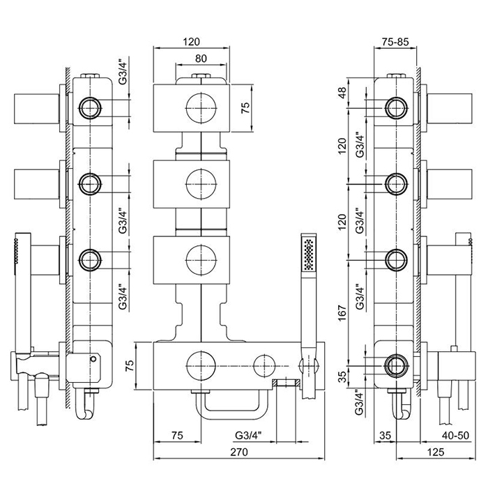 Смеситель для душа термостат Fantini Milano 31 P5 4714B Gun metal Fantini Milano Встраиваемый термостат для душа на 4 источника, 3/4'', (наружняя часть), цвет: Matt Gun Metal PVD