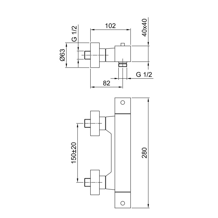 Смеситель для душа термостат Fantini Mint 34 02 F030 Хром Fantini Mint Смеситель для душа, настенный, термостатический, на 1 источник, без душевого набора, цвет: хром