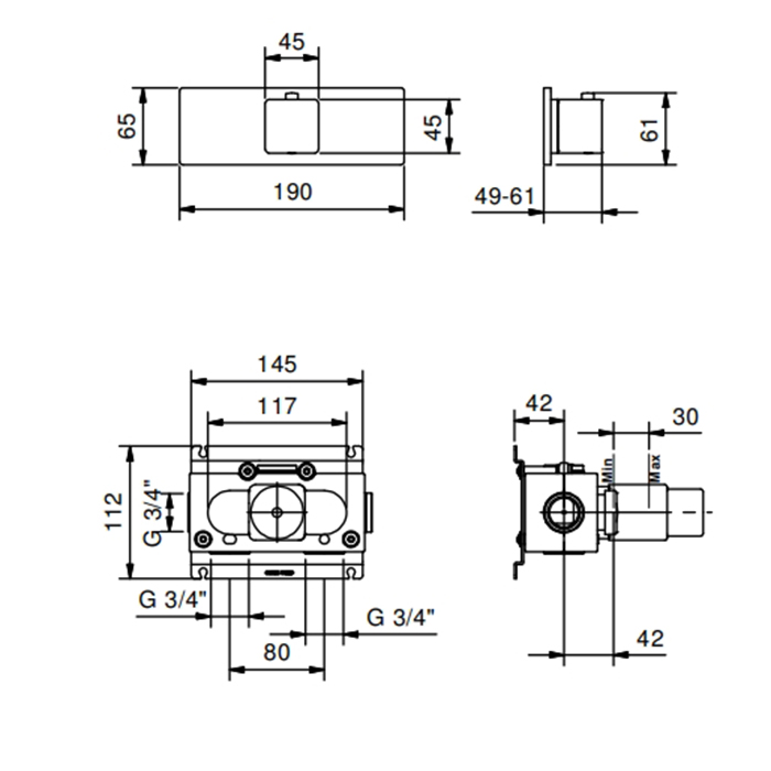 Смеситель для душа термостат Fantini Mint 34 02 F400B Хром Fantini Mint Встраиваемый термост. смеситель для душа на 2 выхода,3/4", (наружняя часть), цвет: хром(без запорного вентиля)