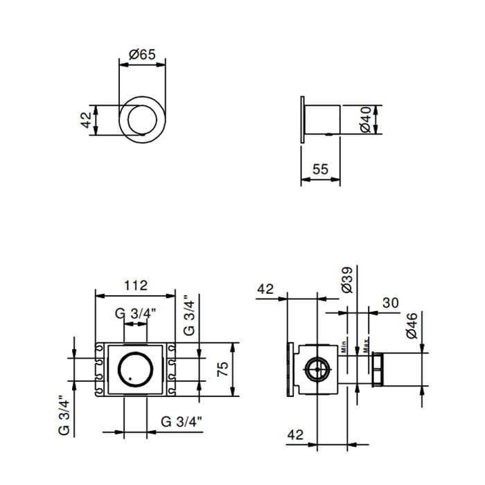 Смеситель для душа термостат Fantini Nostromo 87 P6 G591B Золото FANTINI Nostromo Запорный вентильь, цвет Matt British Gold PVD