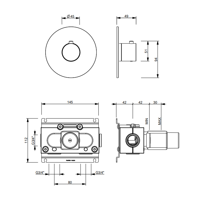 Смеситель для душа термостат Fantini Sailing 67 P5 J200B Gun metal FANTINI SAILING Смеситель настенный встраиваемый, термостатический, без запорного вентиля, внешняя часть, цвет Matt Gun Metal PVD
