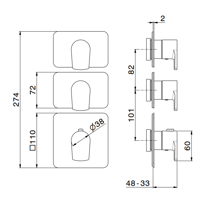 Смеситель для душа термостат Newform Haka 69870E.01.093 Черный матовый Newform Haka Внешняя часть термостатического смесителя на 2 источника с отдельными ручками запорного вентиля, цвет: черный матовый
