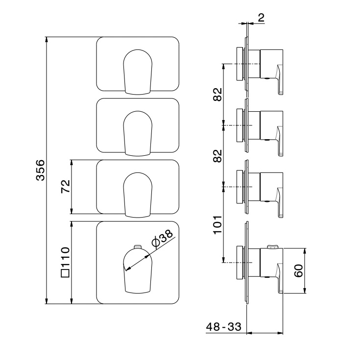 Смеситель для душа термостат Newform Haka 69871E.59.064 Gun metal Newform Haka Внешняя часть термостатического смесителя на 3 источника с отдельными ручками запорного вентиля, цвет: PVD brushed gun metal