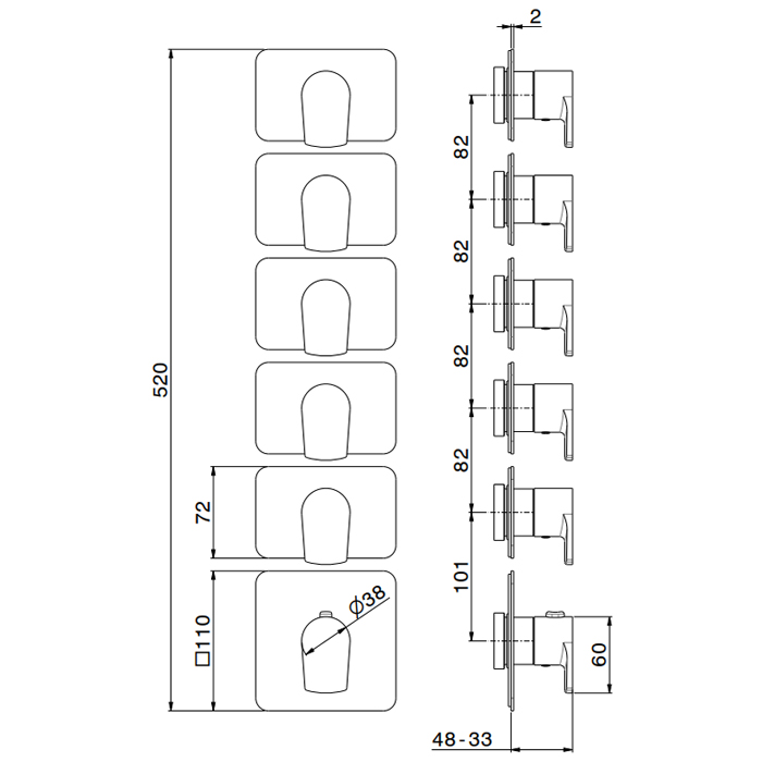 Смеситель для душа термостат Newform Haka 69873E.59.097 Золото Newform Haka Внешняя часть термостатического смесителя на 5 источника с отдельными ручками запорного вентиля, цвет: PVD brushed gold