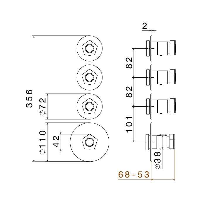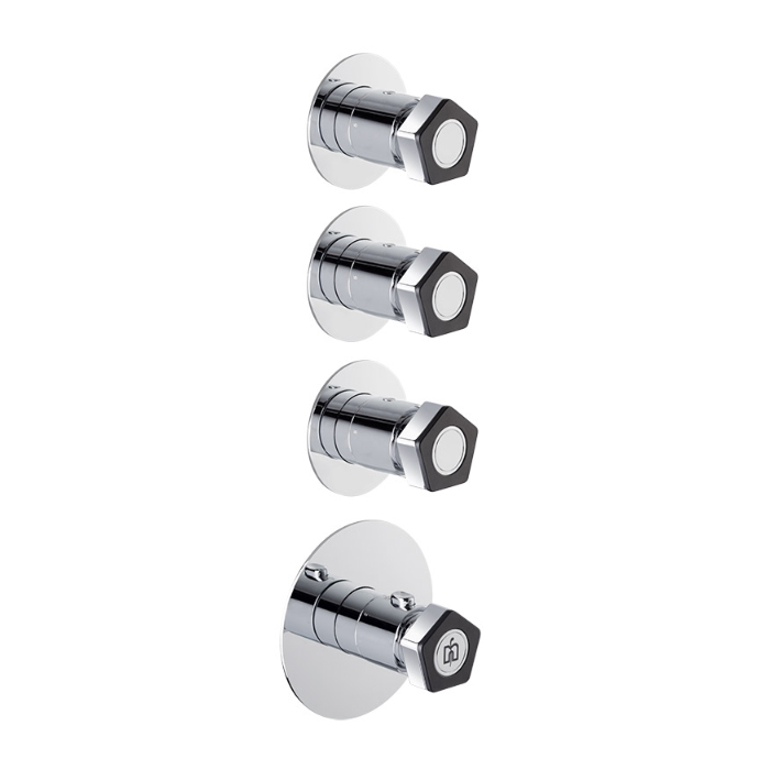 Смеситель для душа термостат Newform ParkLE 69800E.05.093 Хром Newform ParkLE Внешняя часть термостатического смесителя на 3 потока с отдельными ручками запорного вентиля, цвет: хром + черный матовый