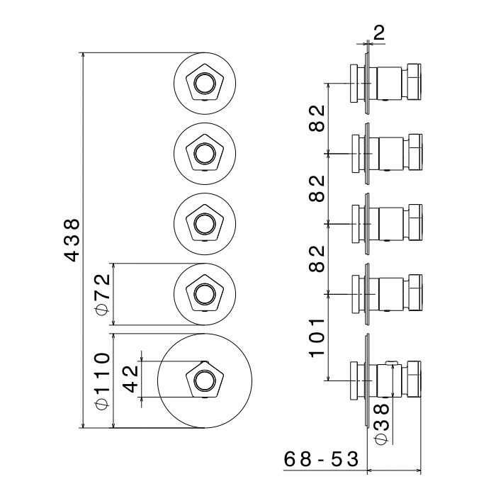 Смеситель для душа термостат Newform ParkLE 69801E.05.093 Хром Newform ParkLE Внешняя часть термостатического смесителя на 4 потока с отдельными ручками запорного вентиля, цвет: хром + черный матовый